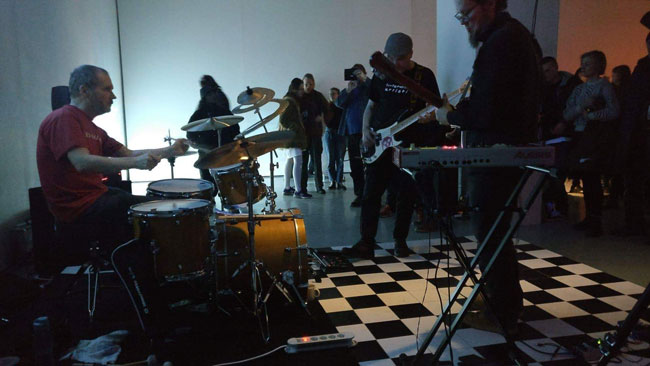 Playing live in Exhibition laboratory, 9.1.2020. Photo: Marjo Levlin